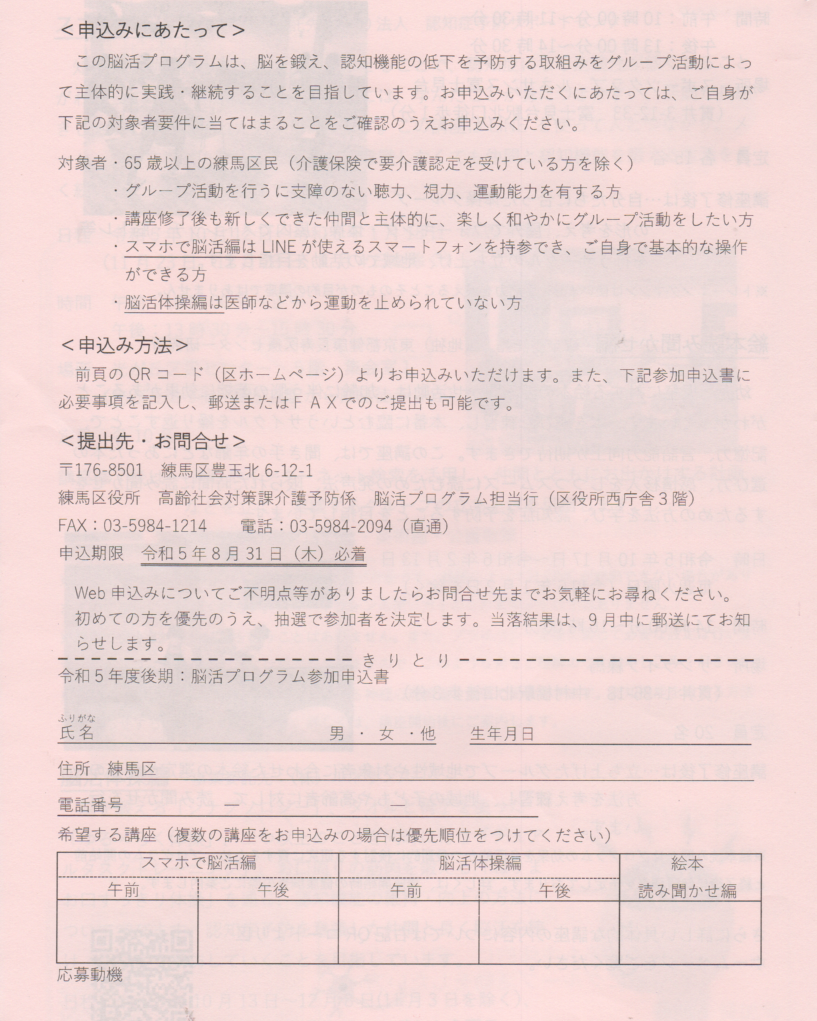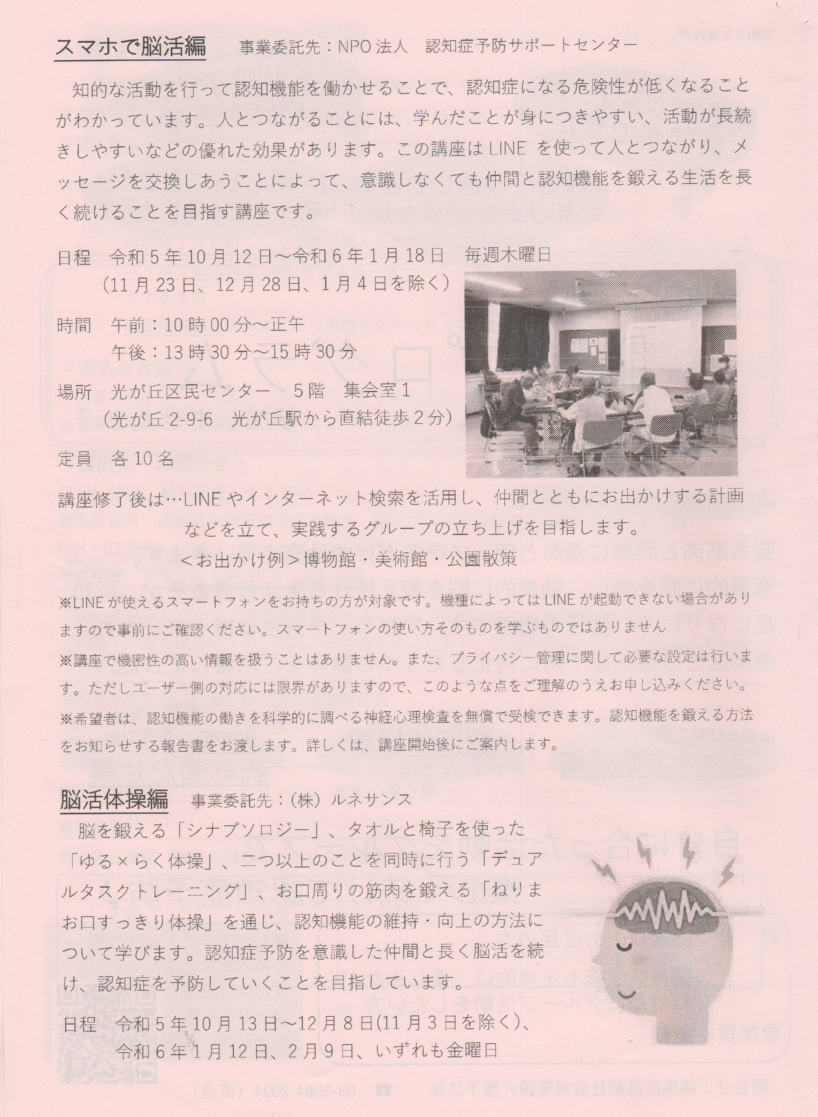 認知症予防 脳活プログラム 参加しませんか?