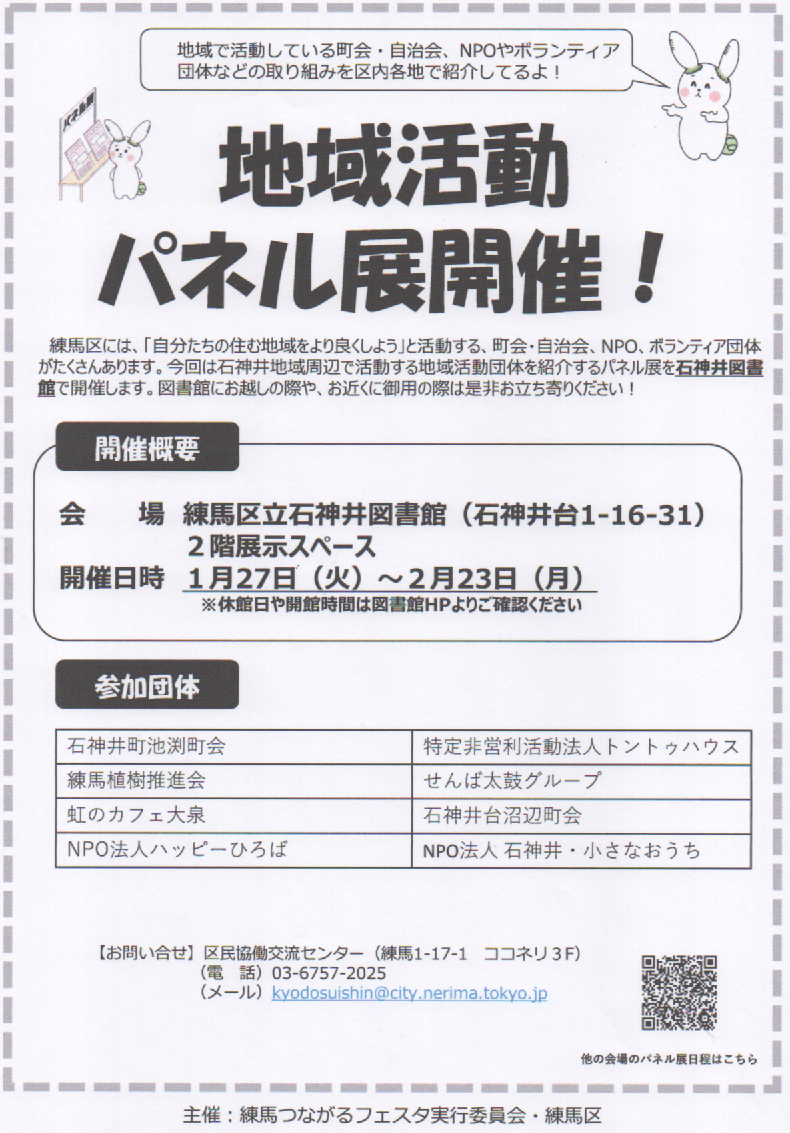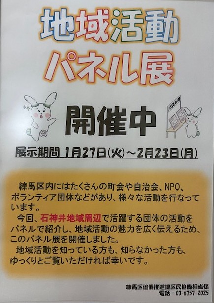 練馬区立石神井図書館で「地域活動 パネル展」が開催されています