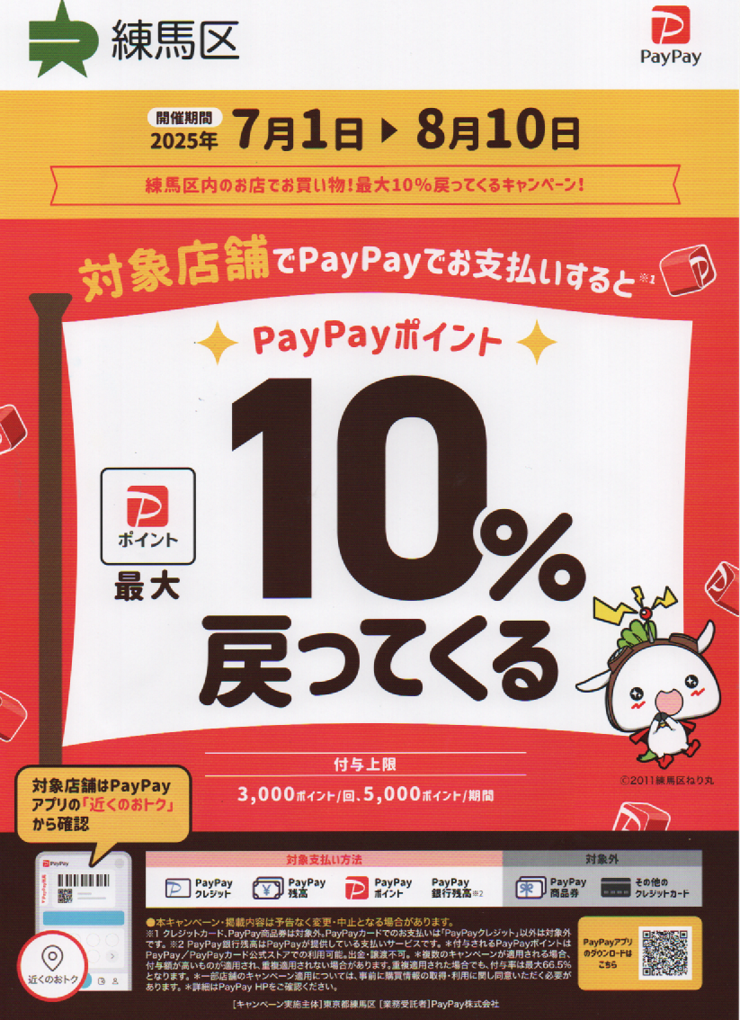 対象店舗でpaypayでお支払いすると最大10%戻ってくる