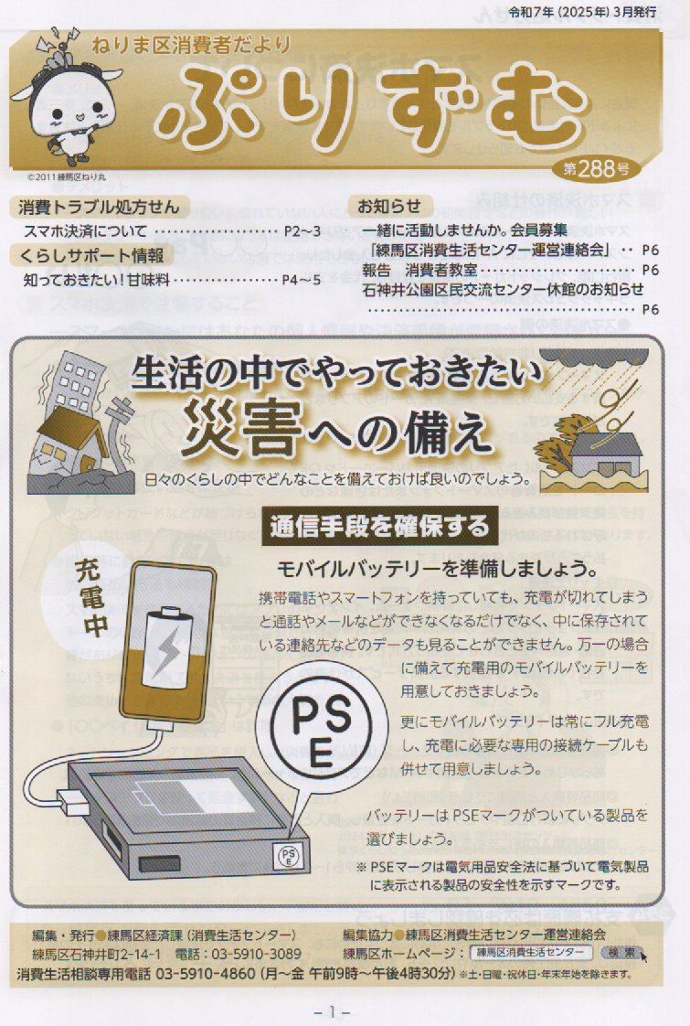 ねりま区消費者だより ぷりずむ 第288号 生活の中でやっておきたい災害への備え