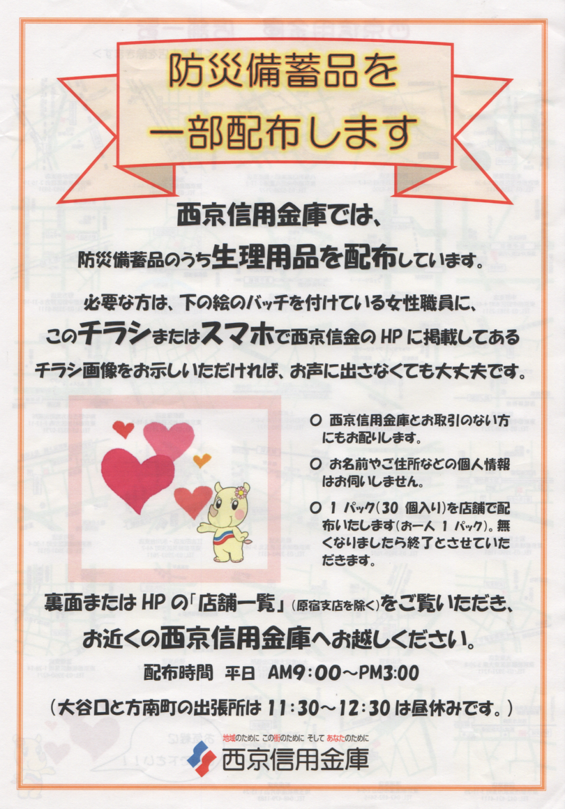 西京信用金庫石神井台支店からのお知らせ(沼辺町会会員になっています)