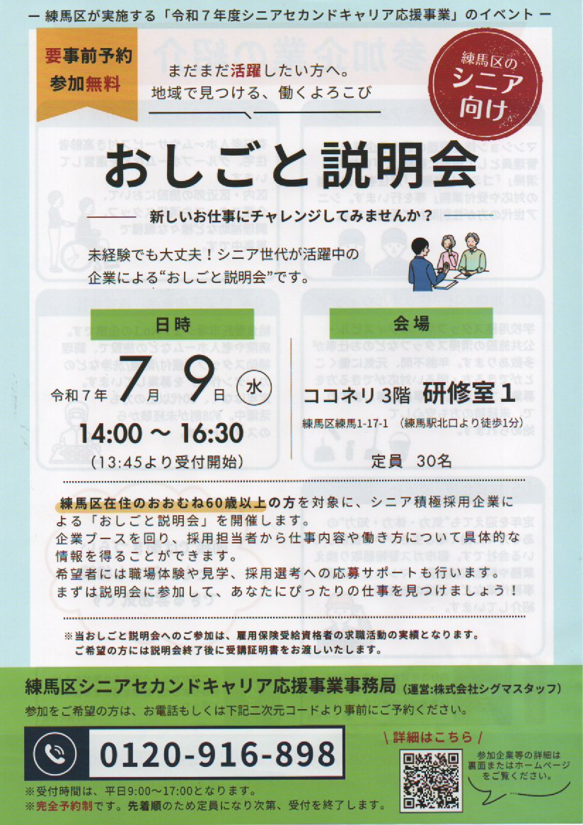 練馬区シニア向け おしごと説明会
