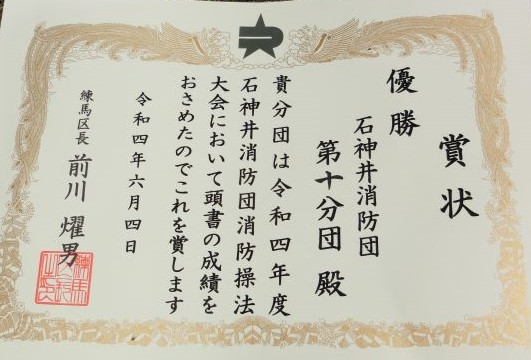 令和4年6月4日(土) 都立石神井公園 B地区野球場において 第48回(令和4年)消防操法大会 に出場した第10分団