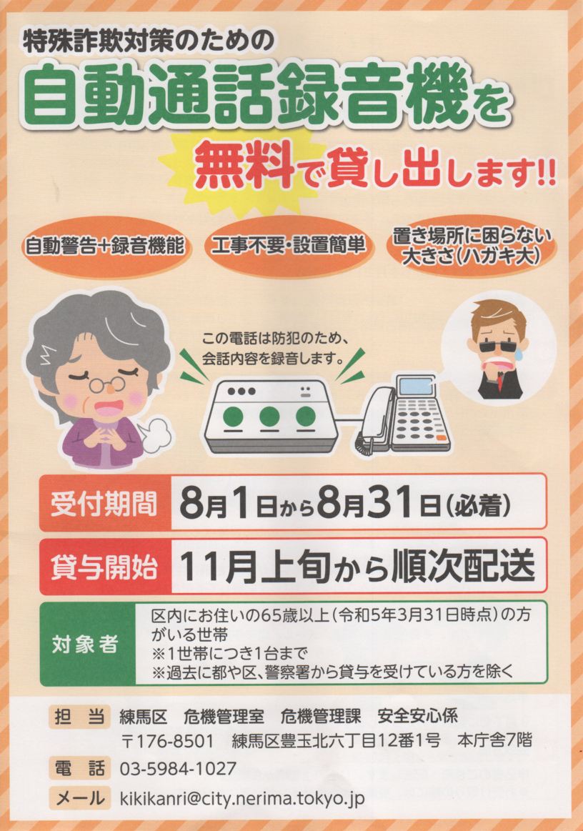 特殊詐欺対策のための自動通話録音機を無料で貸し出しします!