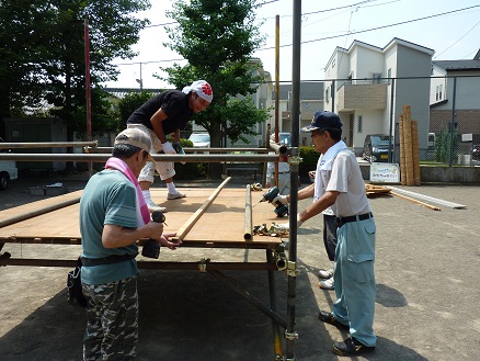 【山車を組み立てる防災部の皆様】