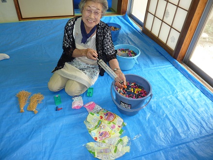 【ヨーヨー釣りの準備をするM理事と青少年部の皆様】