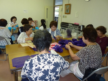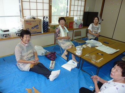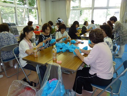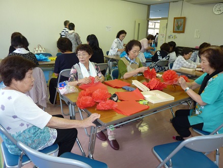 【たくさんのお花紙を作成している班長、女性部の皆様】