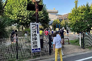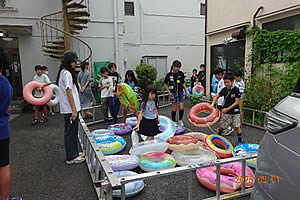 栄町公園にて7月22日(火)から8月1日(金)まで行いました。本年も沢山の方々に参加していただきました。毎年恒例の栄町本通り商店街(えごたゆうゆうロード)よりご提供のビーチボールや栄町町会からのお菓子の配布をしました。