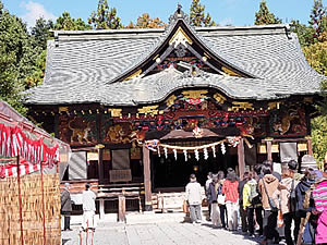 昨年は実施できませんでした見学会を11月3日(月)に防犯委員会と合同で実施いたしました。西武鉄道の「秩父漫遊きっぷ」を利用して特急「ラビュー」で池袋から西武秩父まで快適な1時間半です。江古田の踏切からいつも見ていたあの独創的な車両に乗り、一瞬でしたが車内から見る江古田は不思議な感じでした。 秩父神社は、第十代崇神天皇の御代に創建され、現在の社殿は天正20(1592)年に徳川家康公により寄進されたもので、江戸時代初期の建築様式をよく留めており、埼玉県の有形文化財に指定されています。