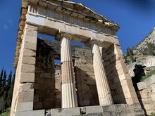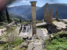 眼下にオリーブの谷とコリンティコス湾を見下ろす絶景の地に神託であまりにも有名なアポロン神殿が建つ。神域の成立は紀元前8世紀頃と言われ、最盛期の前6世紀頃には都市国家各国の指導者や王がこぞって神託を求め、国家の運命を左右するほどの影響力を誇ったという。しかし紀元後4世紀になると、キリスト教の興隆に伴いデルフィの神託は禁じられ、そのうえ神域が地震により土中に埋没。現在見ることが出来るのは、マラトンの戦いにおけるアテネ勝利を記念して建造された「アテネ人の宝庫」ぐらいで、その他多くは基礎部と柱が往時の隆盛を偲ばせるに留まっている。